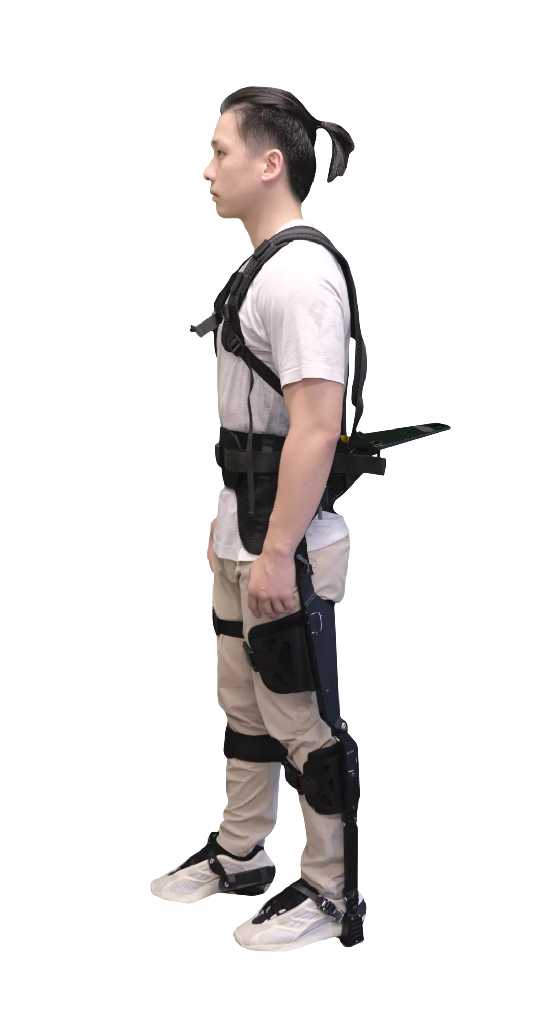 Lightweight passive lower limb exoskeleton for load transfer. Reduces pressure on shoulders and feet, ideal for rescue, industrial and outdoor operations.